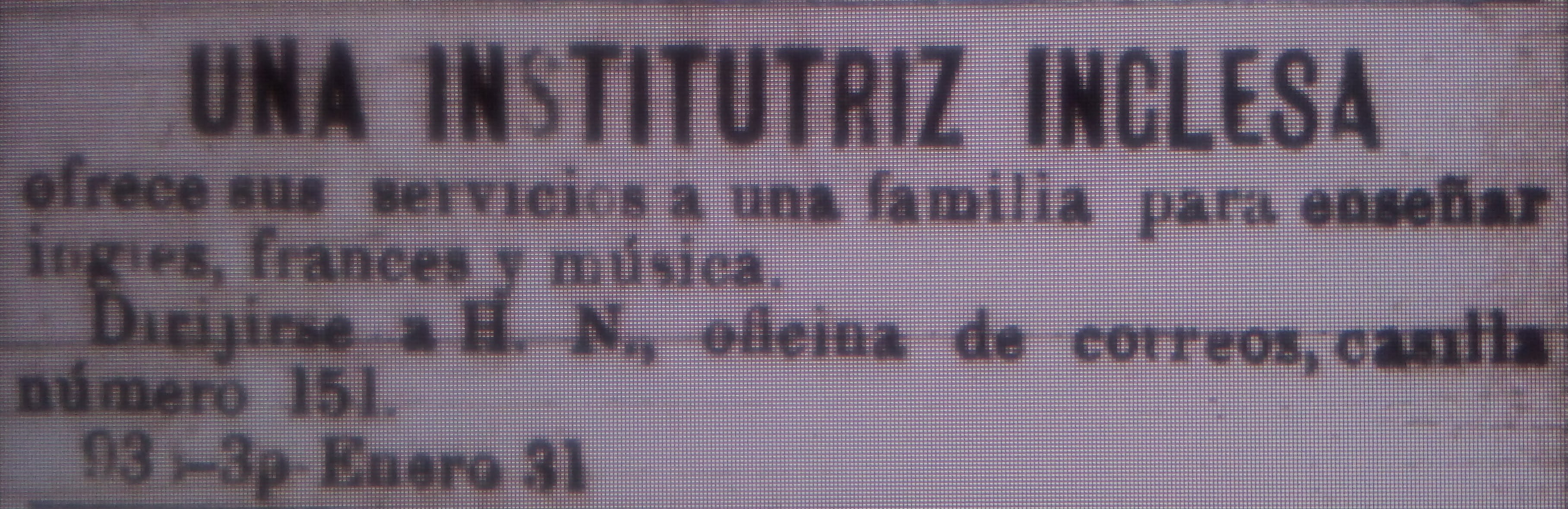 Imágenes de avisos publicitarios en la prensa porteña sobre institutrices inglesas
